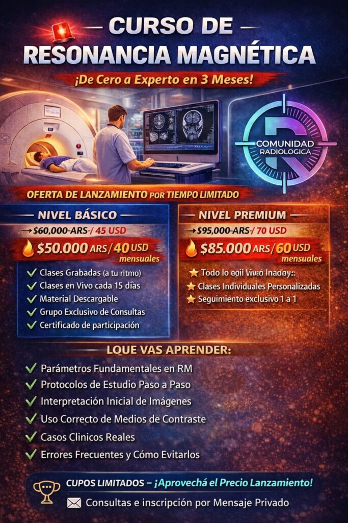 CLASES GRATUITAS: Brindadas según cronograma de la comunidad radiológica, las mismas se publican por el canal de difusión de WhatsApp y redes sociales Tik Tok, Instagram y Facebook.